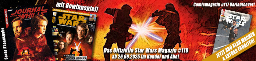 Mit Auslieferung von Heft 119 (September 2025) erwartet alle Abonnenten als kostenloses Special das Star Wars-Comicmagazin #117 aus dem Hause Panini Comics mit exklusivem Variantcover!